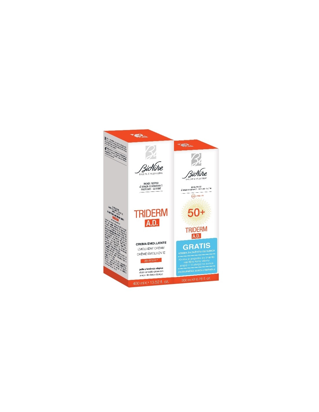 Bionike Triderm A.D. Emollient Cream + Bionike Triderm A.D. SUN SPF50+ Krema PROMO pakiranje